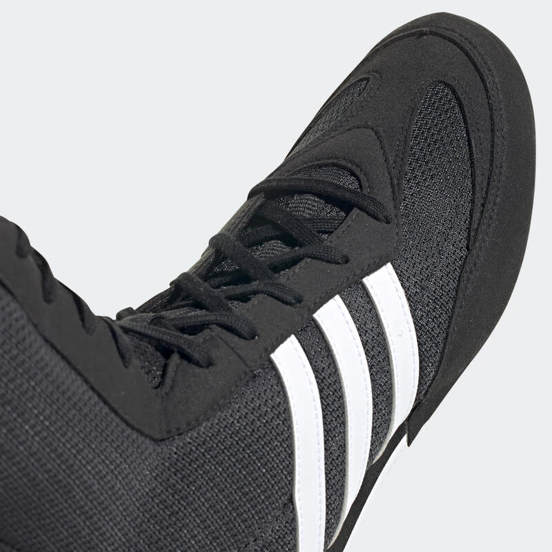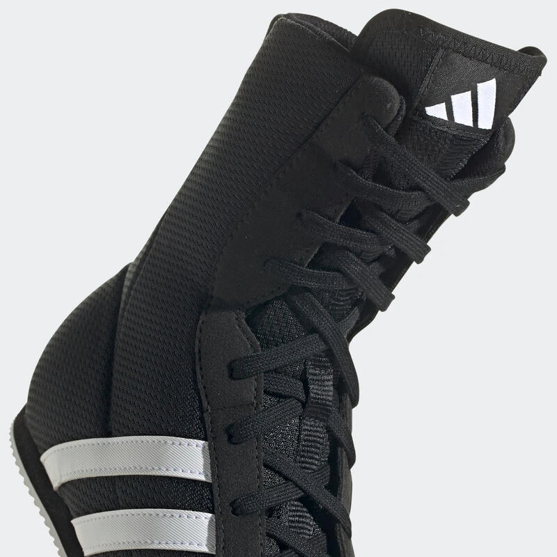 Sois intouchable. Cette chaussure de boxe adidas Box Hog te permettra de rester hors de portée de ton adversaire grâce à sa tige en mesh léger, sa semelle intermédiaire en EVA ultra fine et sa semelle extérieure en caoutchouc adhérent. La tige mi-montante et les renforts internes t’assurent une stabilité supérieure quand ton jeu de jambes s’intensifie.