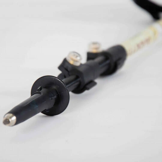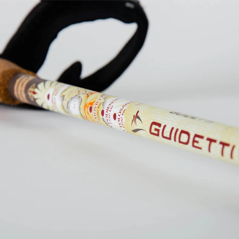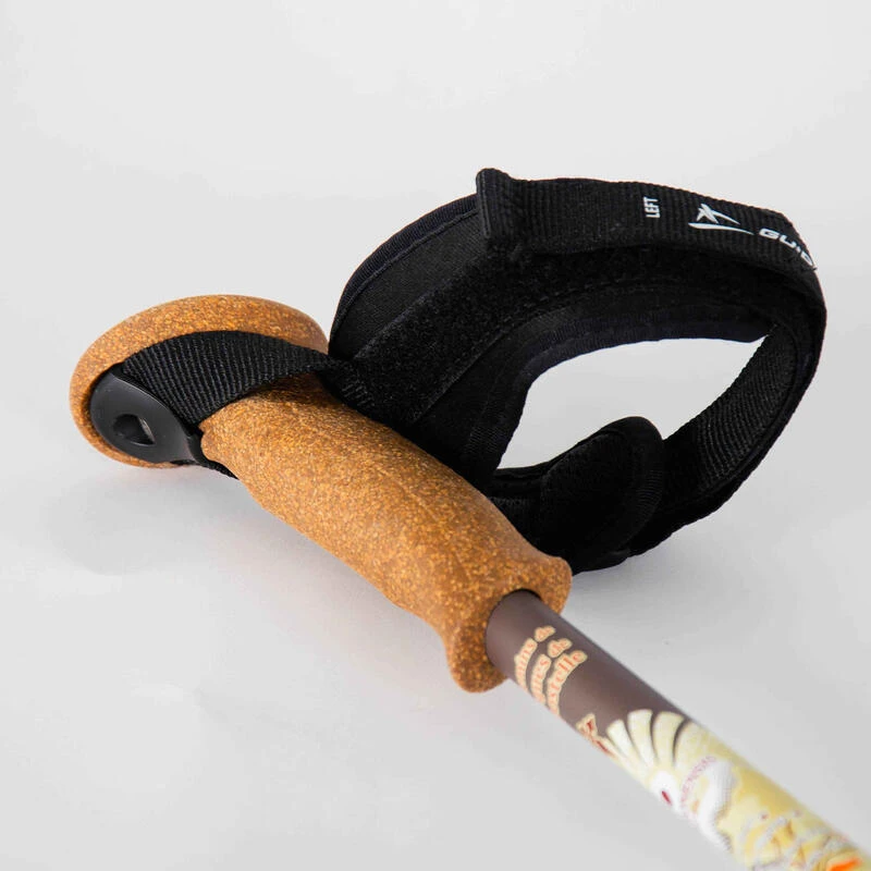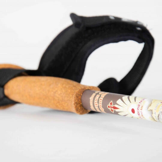 Bâtons de randonnée réglables aux couleurs du chemin de St Jacques de Compostelle, avec poignée en liège • Fabrication française • Poids unitaire 265g