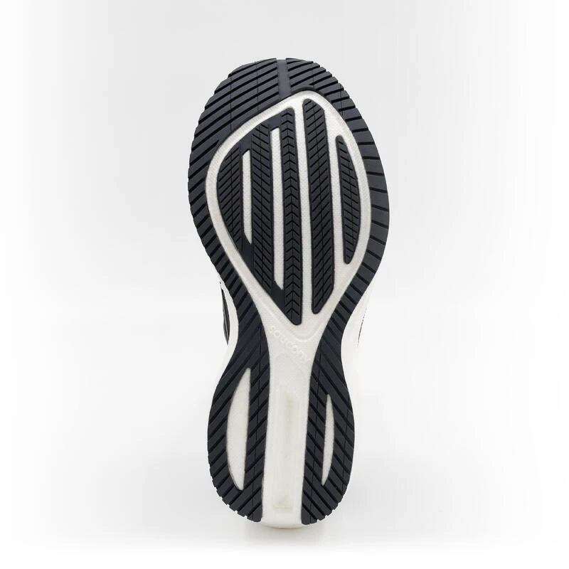 Parfaitement équilibrée avec ses nouvelles lignes géométriques et son drop de 10 mm, cette chaussure présente des formes incurvées avec une touche d’originalité.
