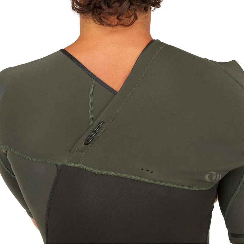 L’ensemble de la combinaison est en Néoprène ultra extensible notamment au niveau du haut du corps afin de favoriser les mouvements de rame et du bas dos faciliter le « Take Off »
