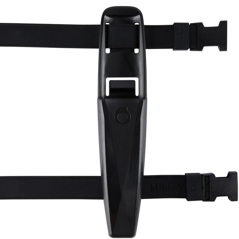 Les sangles sont en silicone : ce qui leur procure une meilleure accroche sur le néoprène notamment, évitant ainsi au couteau de bouger et de tourner sur le plongeur. Avec cette longueur de sangle, le couteau et son fourreau peuvent se fixer sur l’avant-bras, la cuisse, le mollet et même sur le Direct system du gilet stabilisateur. La fermeture de la sangle s’effectue avec des clips en matière plastique, pour plus de facilité et d’aisance pour fixer un couteau.