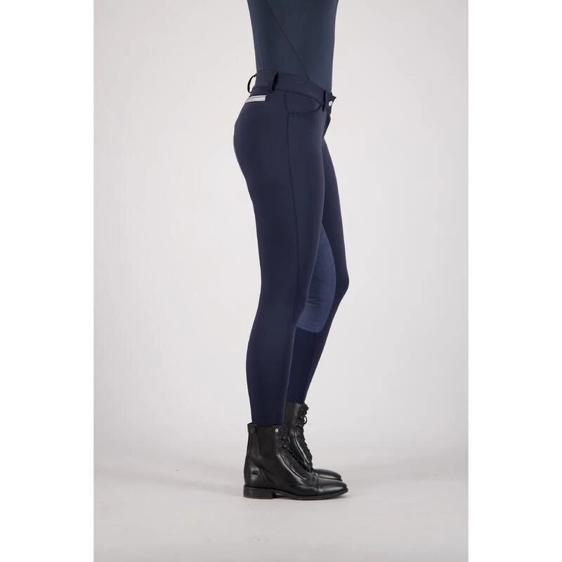 Un pantalon haut de gamme pour femme qui combine confort, élégance et fonctionnalité. Siège en cuir et ceinture basse pour une position optimale en selle.