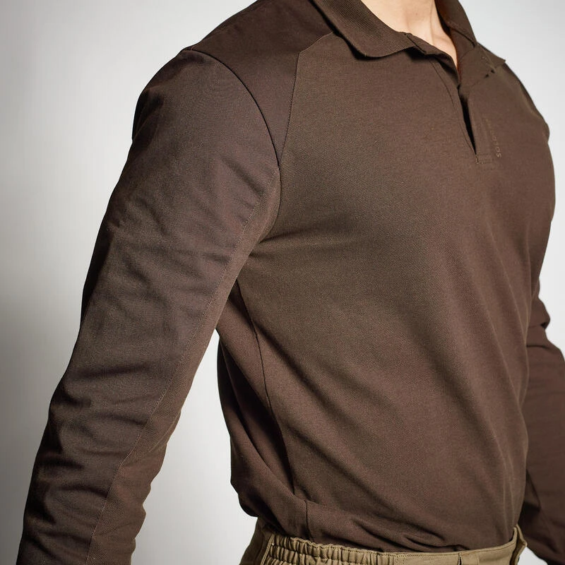 La chasse au bois par temps sec.Ce polo manches longues a été spécialement conçu pour la pratique de la chasse et de toutes les activités campagne par temps sec. Ces zones renforcées lui garantissent une grande résistance.