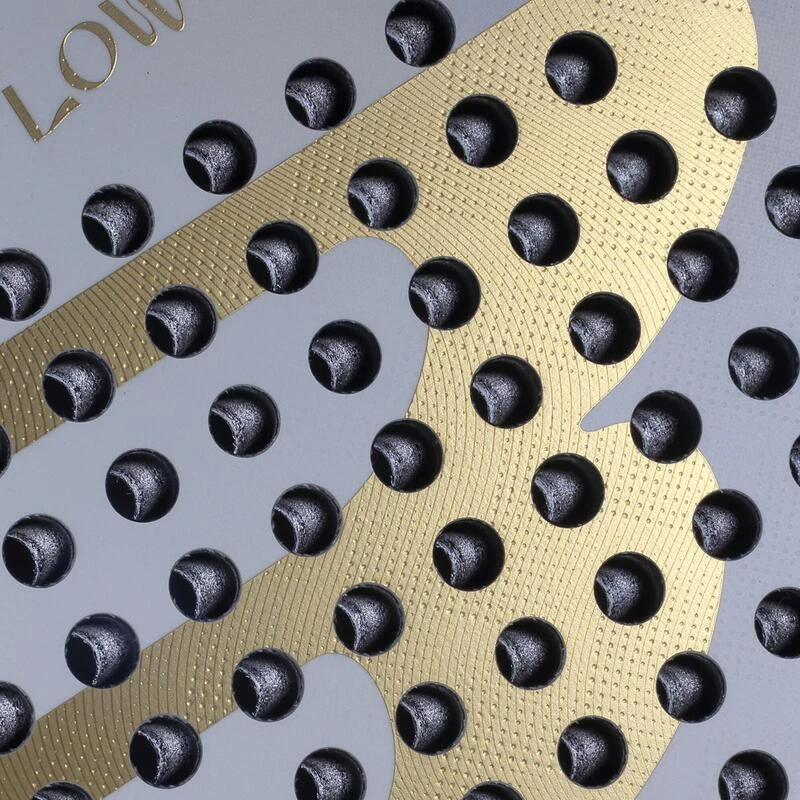 Finition innovante située de forme polygonale sur la surface de la raquette qui contribue à faciliter la prise en main et à trouver un excellent effet de balle. La disposition soignée du patron offre un rapport parfait entre l’effet et le contrôle de la balle.