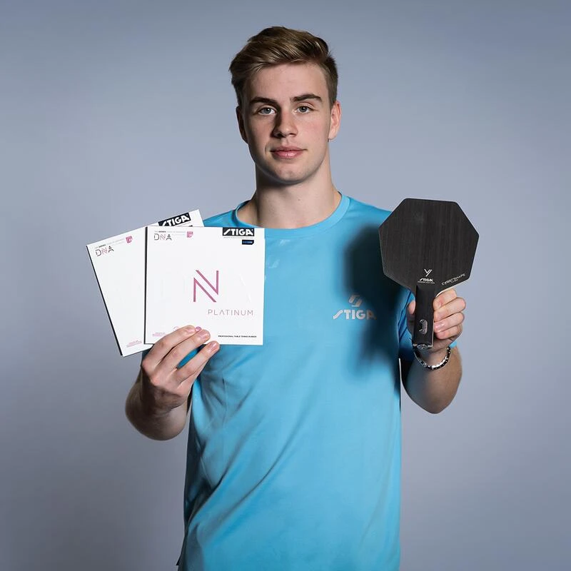 La raquette « Truls System » est une fusion entre une gomme dure DNA Platinum XH (52,5 degrés) et notre célèbre bois Cybershape Carbon en grip droit.